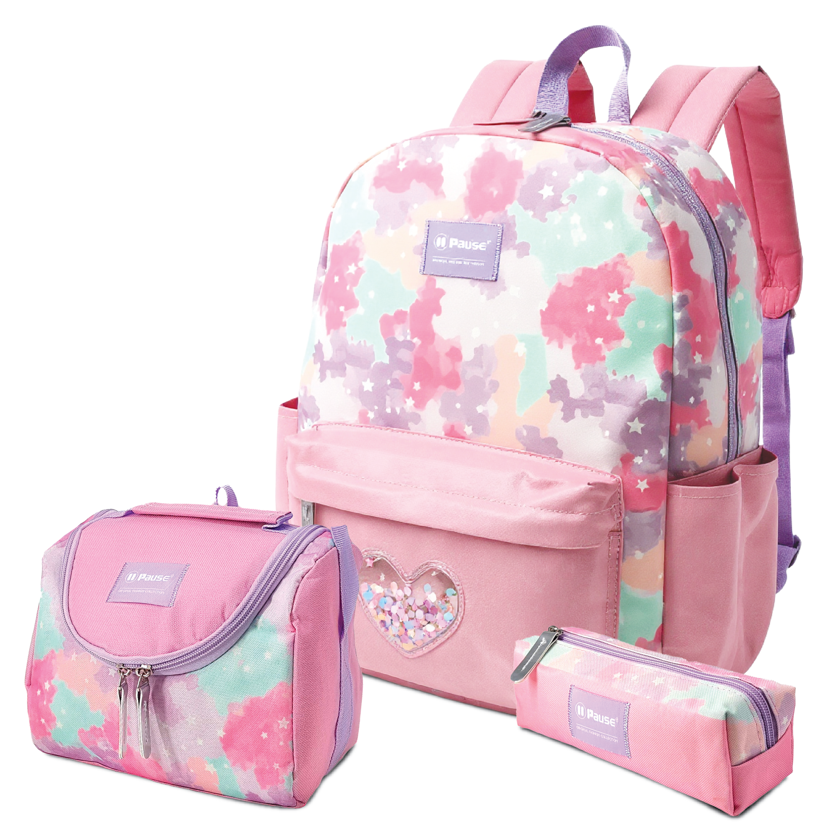 set of 3 backpack pause candy heart .